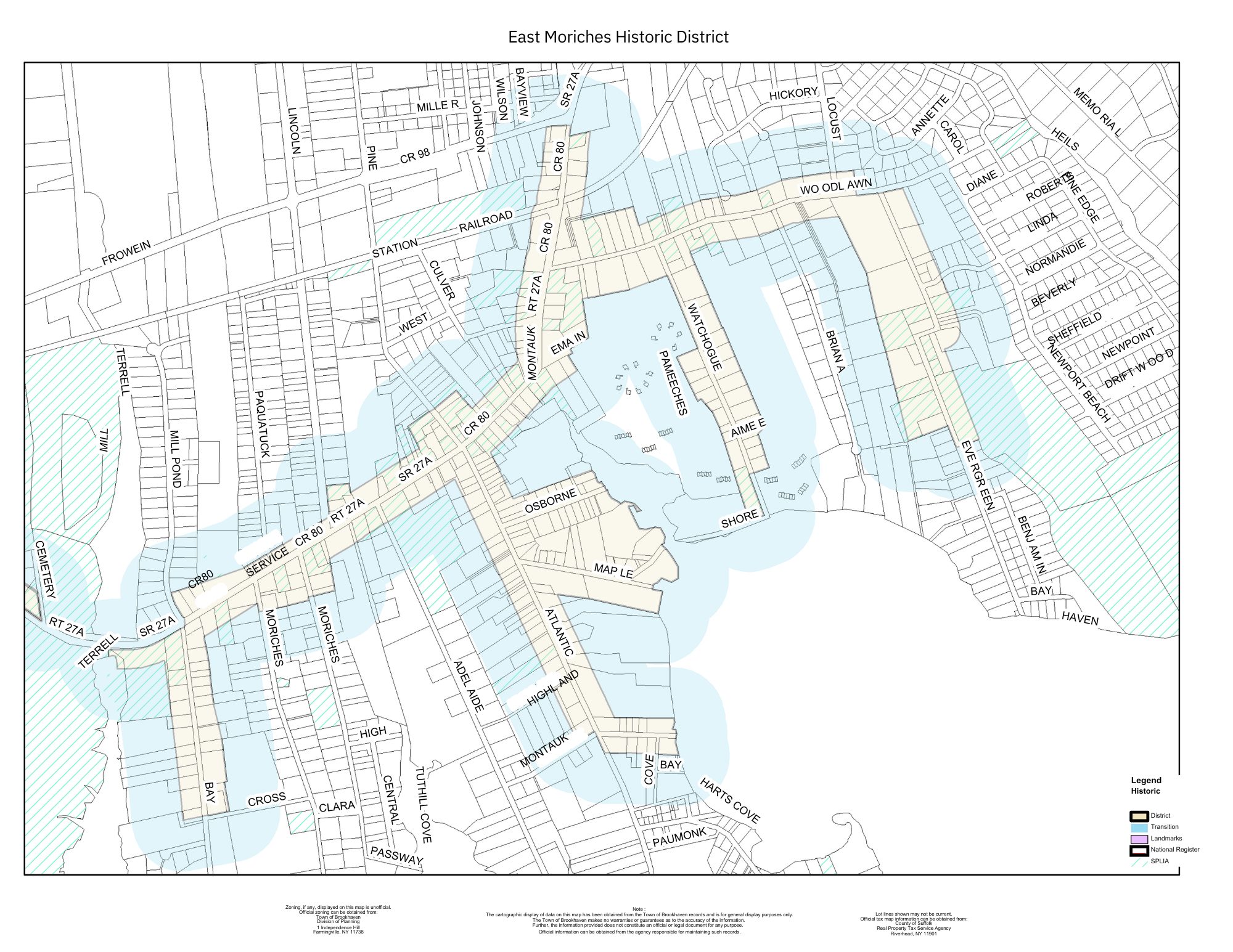 Within the district, you’ll find a collection of beautifully maintained homes, historic landmarks, and notable transition zones that reflect the charm and character of East Moriches through the centuries. The official district map outlines its boundaries, key landmarks, and contributing structures, showing how this community continues to celebrate its past while welcoming new generations of homeowners.